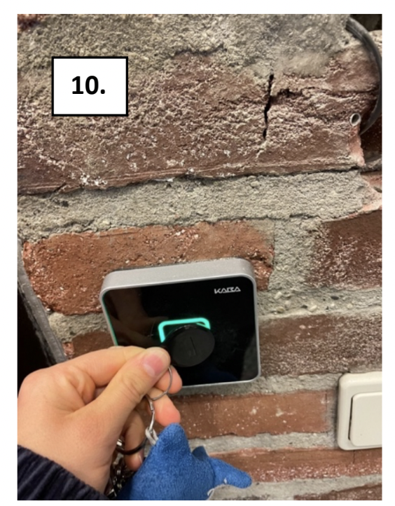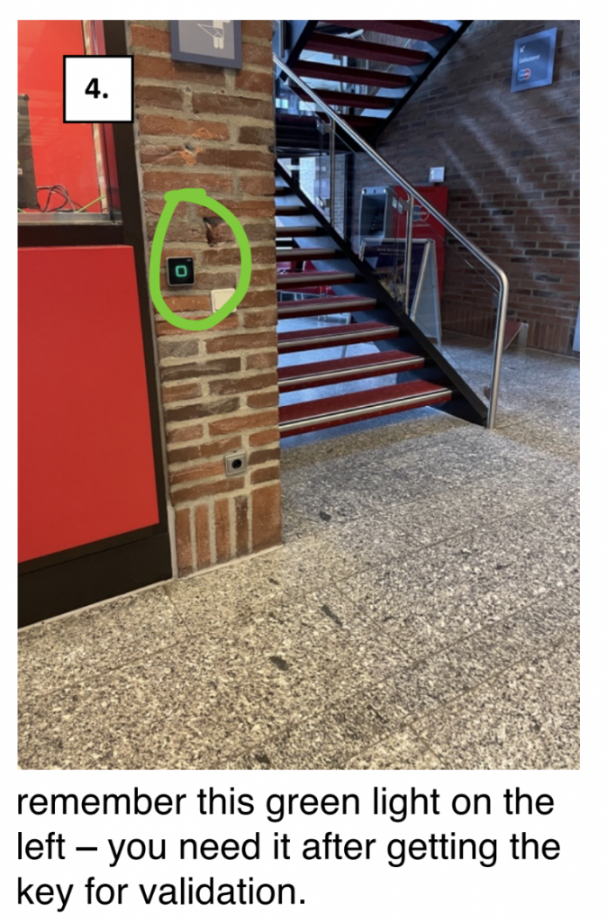 walk back to green light to validate the key – hold