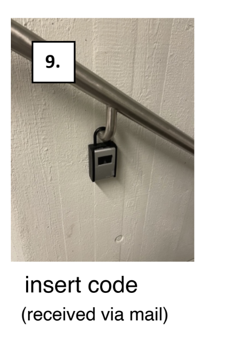 - get key from keybox (code: if you haven’t received the current code directly from us – please contact Laura)